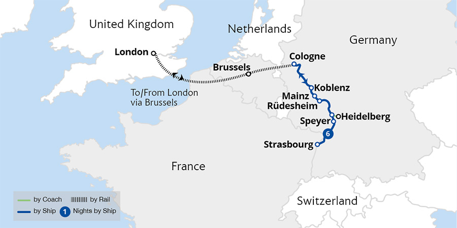 Embark on a breathtaking Rhine cruise through some of Germany's most picturesque towns and cities at this most magical time of year. From the historic charm of Mainz and Koblenz to the storybook streets of Strasbourg and Rüdesheim, experience scenic beauty and rich culture at every stop. Onboard, enjoy a festive atmosphere with a...