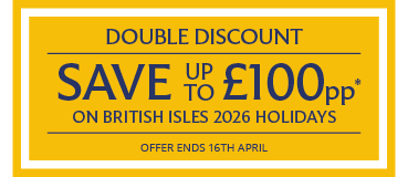 Save up to £100pp on British Isles 2026 holidays, when you book by 16th April 2026.
