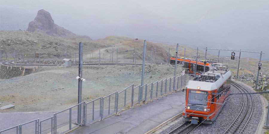 Zermatt. Enroute, the train clings to the mountainsides on the