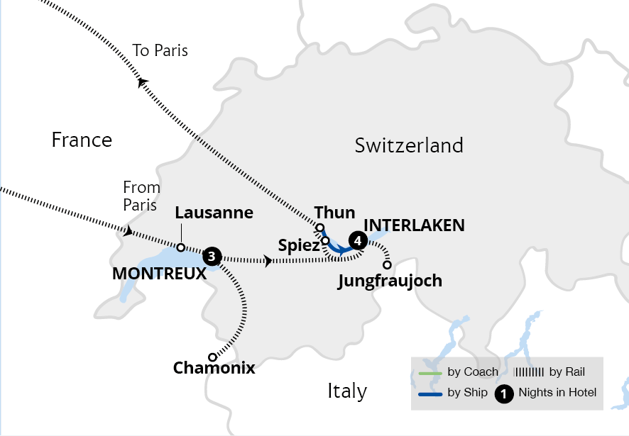On this sensational holiday, travel from Montreux on the shores of Lake Geneva to the mountainous surroundings of the Jungfrau Massif. Explore Château de Chillon, sail on Lake Geneva and cross the Alps to the French mountain town of Chamonix on the Mont Blanc Express. Boarding the GoldenPass Express, admire views of the Bernese Alps enroute to...