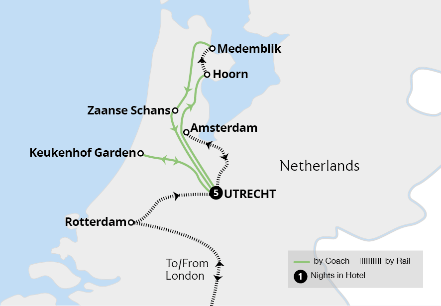Experience the joys of spring in the Netherlands on this glorious break featuring world-famous gardens, picturesque canals and windmills. Based in the attractive city of Utrecht, our holiday is packed with excursions to enchanting locations, including the stunning Keukenhof Gardens - with its swathes of multi-coloured spring flowers - a...